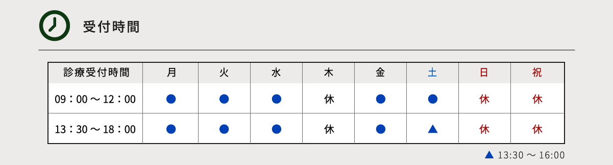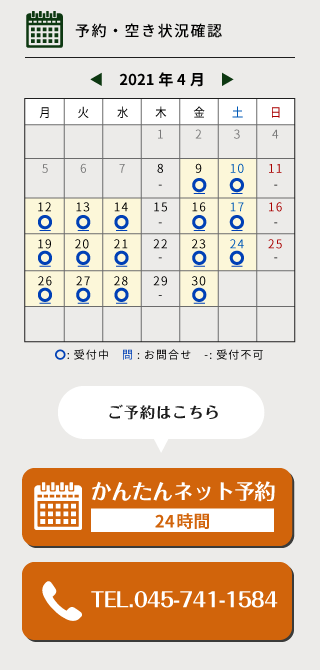 ※ご連絡は診療時間内のご対応をさせていただきますので、ご了承ください。